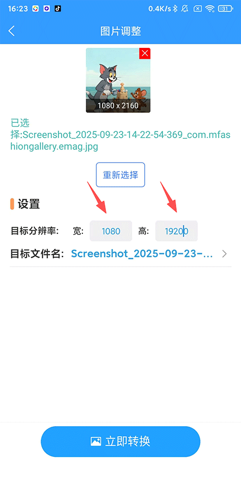 3、设置目标分辨率,点击下方【立即转换】即可!