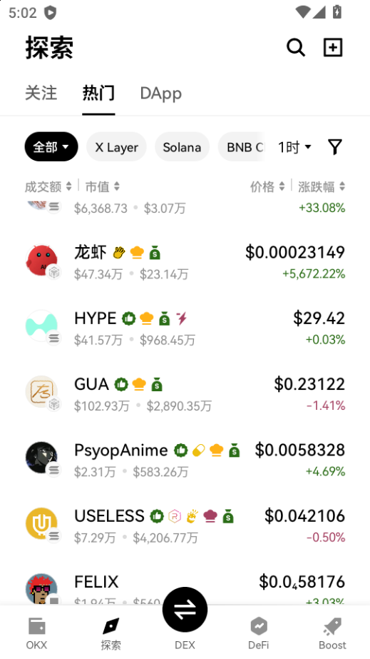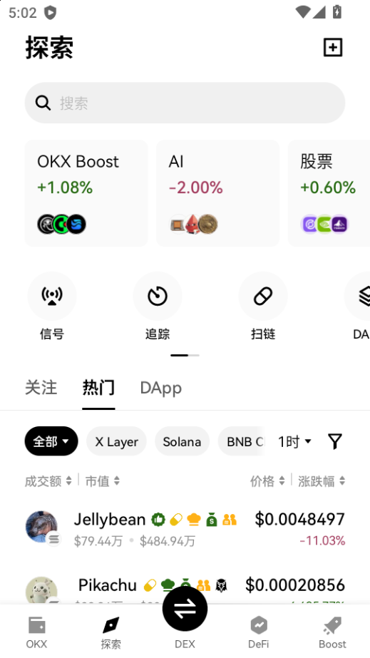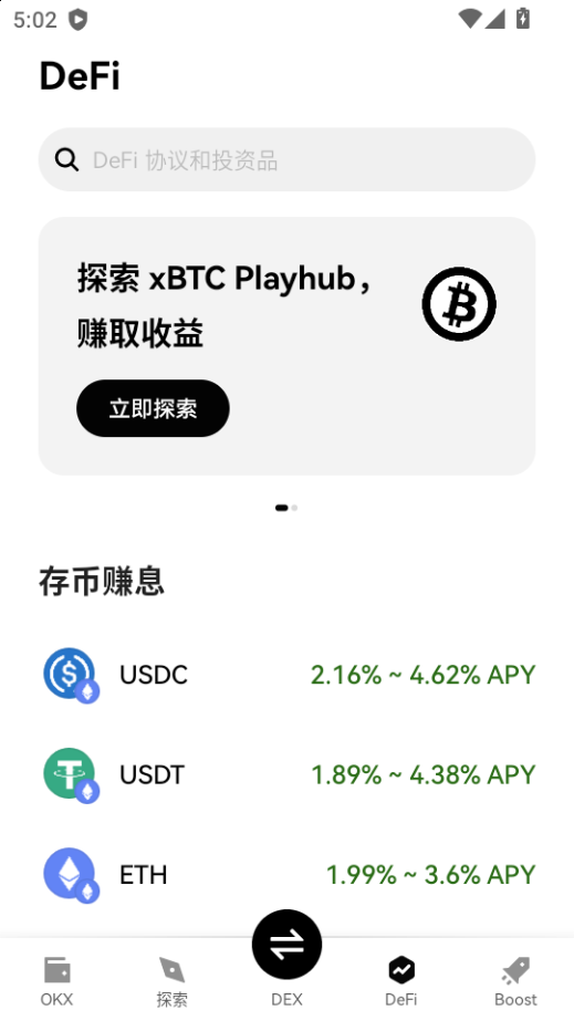 下载进入欧义钱包软件,点击探索