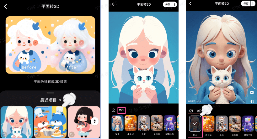 点击进入并上传一张图片,即可让平面色稿转成3D效果哦