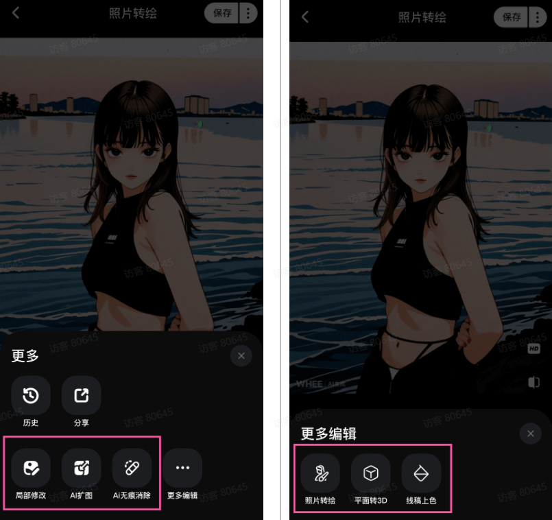 还有局部修改、AI扩图、AI无痕消除等各种功能等你来探索哦!