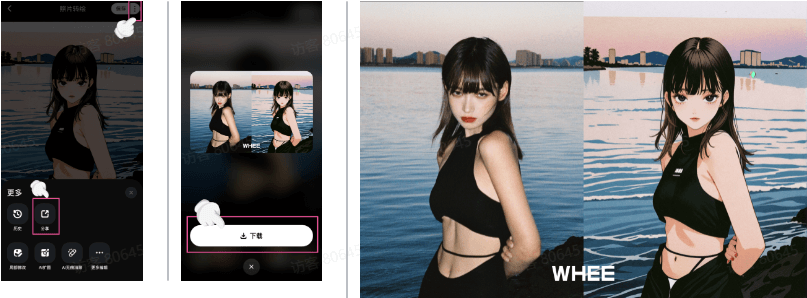 想分享对比图?点击右上角与「分享」按钮,即可保存效果前后对比图