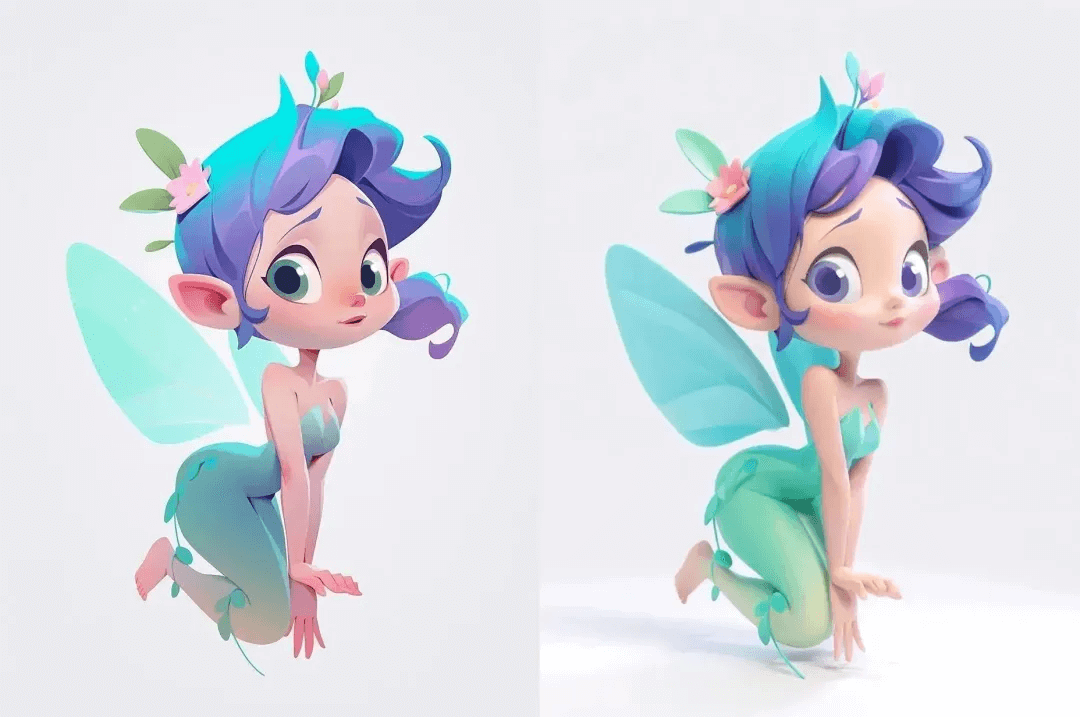 提示词参考3:3D卡通,盲盒娃娃,圆头圆身,纯白棉花,C4D渲染,Q版艺术,黏土材质,辛烷值渲染柔光,软质触感