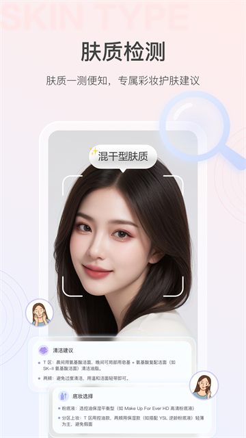 美的你是一款主打AI 颜值分析 + AR 虚拟试妆 + 个人形象管理的综合美妆穿搭 App,核心是用 AI 帮你科学变美。脸到身、从妆到穿,提供一站式科学变美方案,适合想高效变美的你。