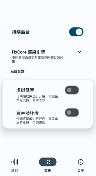 HXAudio(原 HubeRSoundX) 是一款安卓免 ROOT 全局音效增强工具,主打用算法提升手机外放、耳机、音箱的音质,尤其强化低频动态与解析力。