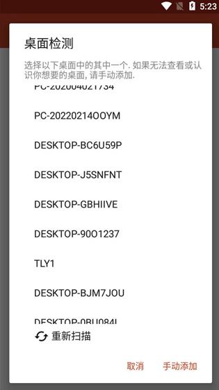 3.扫描电脑:接下来,应用会展示一个界面,让你选择是“重新扫描”还是“手动添加”。为了简便起见,我们直接点击“重新扫描”,让应用自动搜索你的电脑。