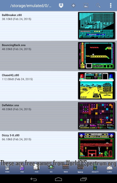 2、打开软件后,将rom文件放到游戏中的文件夹/storage/emulated/0/Android/data/com.fms.speccy/files。