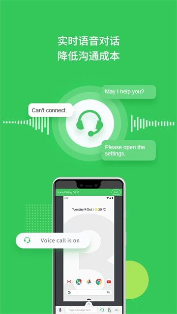 实时沟通:语音通话 + 文字 + 语音消息,边看边指导。