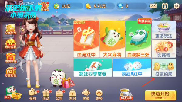1、在游戏界面点击好友约局。