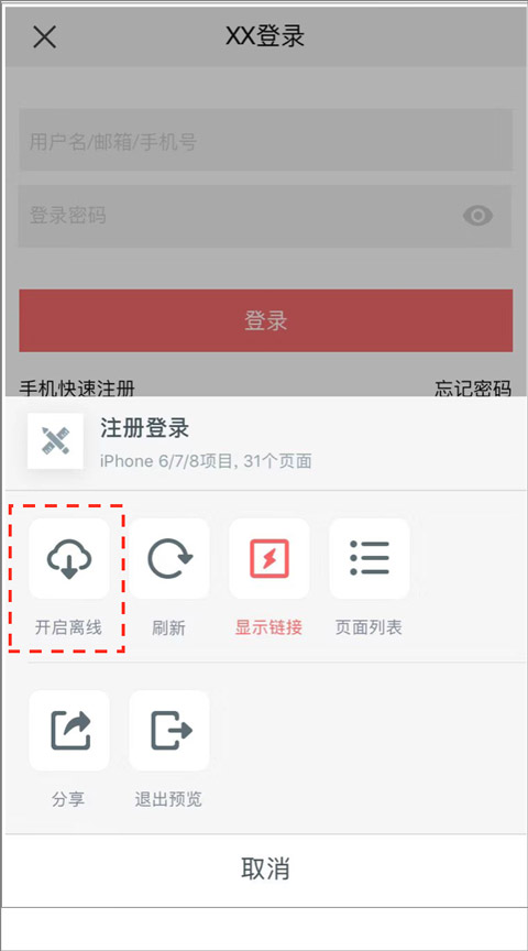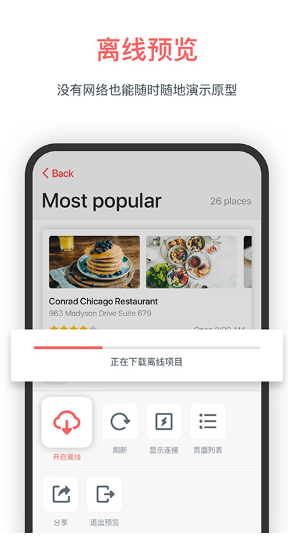 1、打开MockingBot安卓版,登录进入主页,打开需要离线演示的项目,双指点击屏幕调出设置面板,选择「开启离线」。