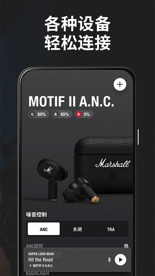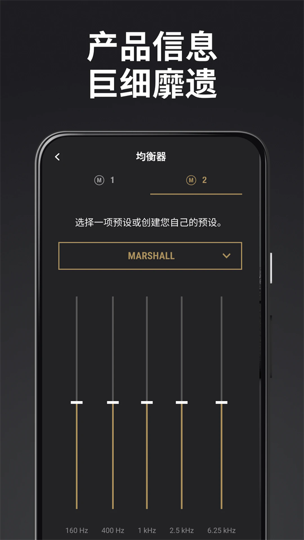 Marshall Bluetooth 是 Marshall(马歇尔)官方推出的蓝牙音箱与耳机专属控制 App,主打远程操控、专业 EQ、降噪管理、固件升级,让你深度自定义 Marshall 音频设备的声音与体验。