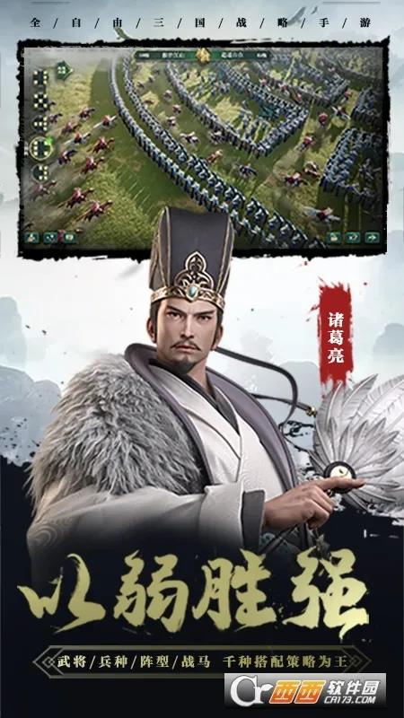 2. 游戏策略丰富,有经典九宫格对战,百位武将、特色技能、五大兵种、十大阵型可自由搭配,还有独创真实城战。
