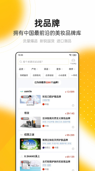 1、汇聚中国前沿美妆品牌库,流量爆品与进口潮品**一目了然**。2、聚集优质代工厂与全球包材商,新品开发**创新设计**触手可及。3、聚合行业优质信息,提供专业分析,打造专属信息过滤器。4、涵盖会展培训与供需对接,推动产业链升级,**高效对接**商机。