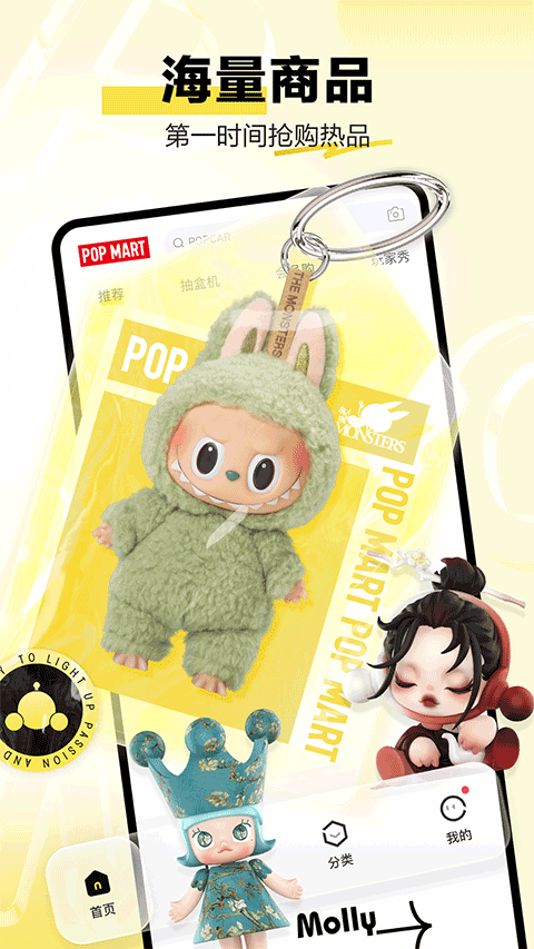 1.海量潮玩商品,满足潮流玩具爱好者多样需求。这里有着丰富多样的潮玩,无论是热门IP联名原创手办,还是各类趣味盲盒,都能让用户找到心仪之物。