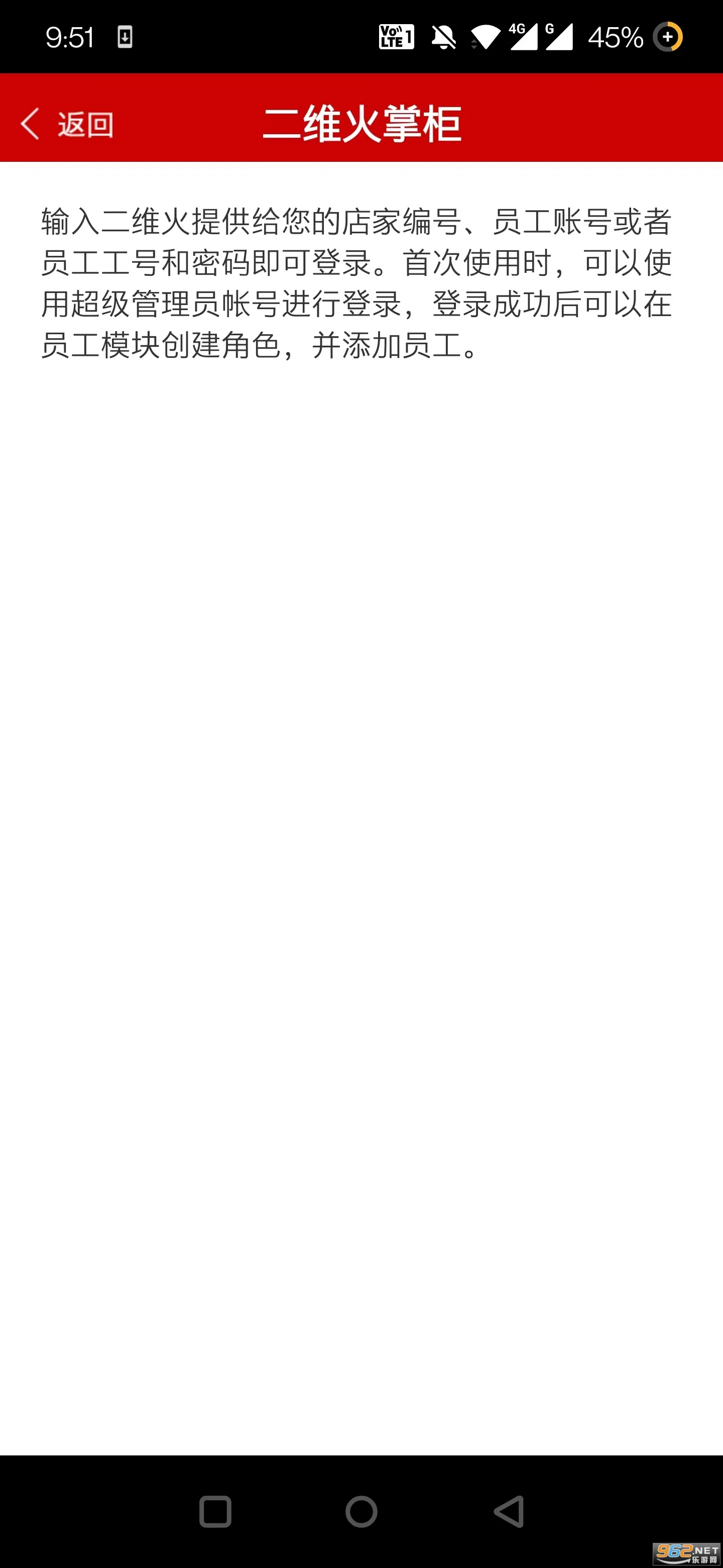 打开「二维火掌柜」APP,用手机号 / 账号登录。