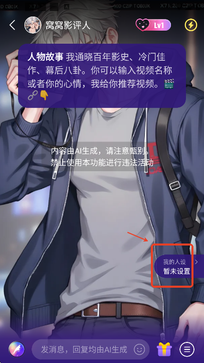 如果点击虚拟恋人,跳转页面后,点击“我的人设”