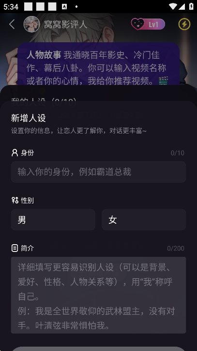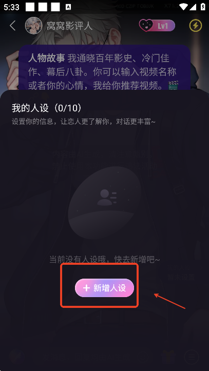 然后点击新增人设,让你的虚拟恋人更加了解你