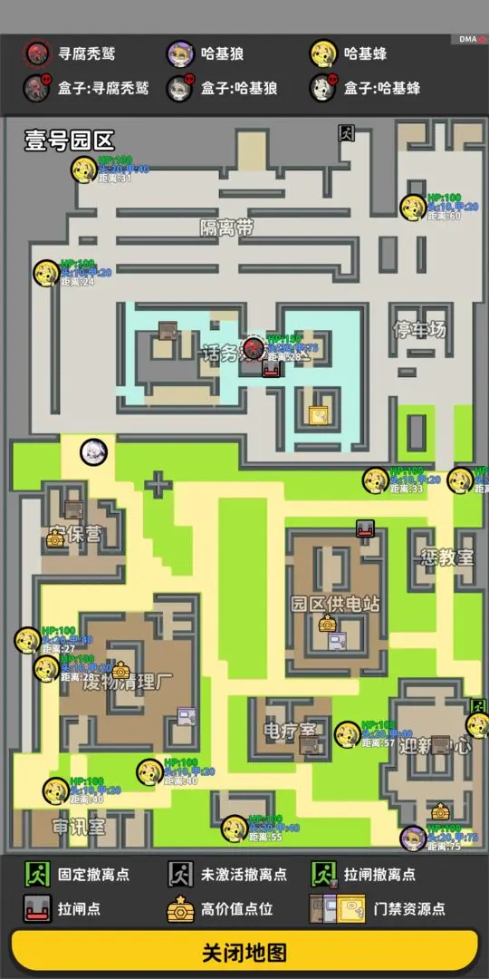 2、我们可以看到这个地图的布局、以及撤离点、拉闸点和高价值点位等。