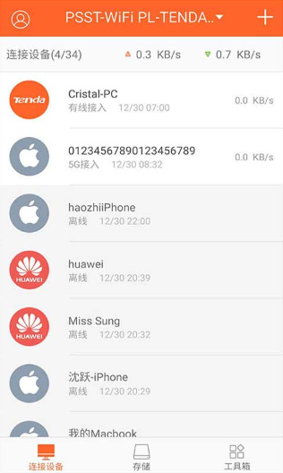 4. 能查看网络速度,进行设备限速,还有家长控制功能。