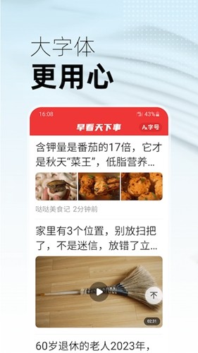 早看天下事是全面的新闻资讯软件,收录多样新闻,权威深度报道实时更新。有热点推送、实时热搜,涵盖海量内容。能在线浏览、看视频,可设置字体大小、分享喜欢的内容,还有精彩视频、智能推荐等特色优势。