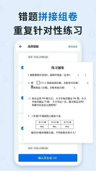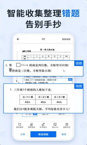 2. 错题整理超高效:框选错题分学科储存,支持录入答案错题组卷,还能转换成word或pdf格式打印,巩固练习超方便。