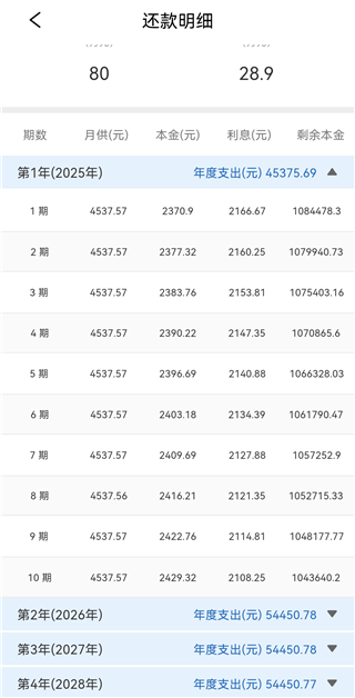 7、点击每一年可查看每一期的还款金额。