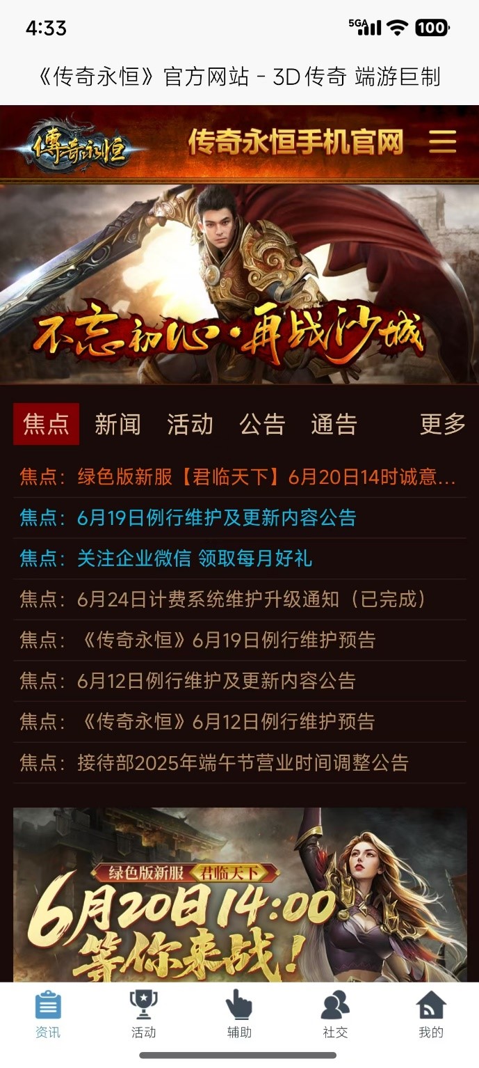 传奇永恒助手是盛趣游戏(上海数龙科技有限公司)官方出品的《传奇永恒》端游专属手机辅助工具,实现 "电脑离线,手机在线" 的无缝游戏管理体验。作为官方工具,它与游戏数据完全互通,提供角色管理、资讯获取、社交互动、福利领取等核心功能,是《传奇永恒》玩家的必备工具。