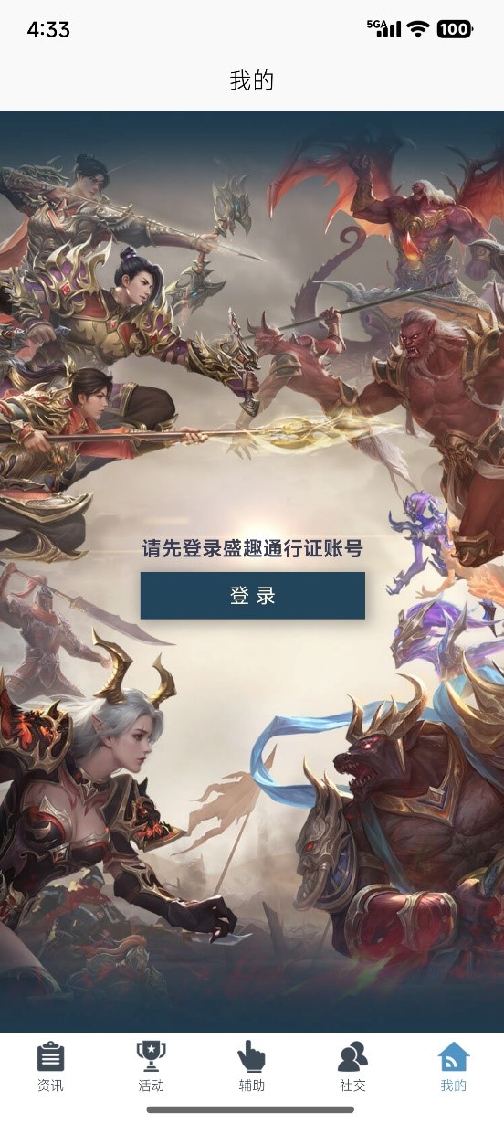除资讯页外,访问其他页签都需要先登录账号并绑定角色后才能使用。需要使用盛趣通行证账号和静态密码或动态密码的方式进行登陆