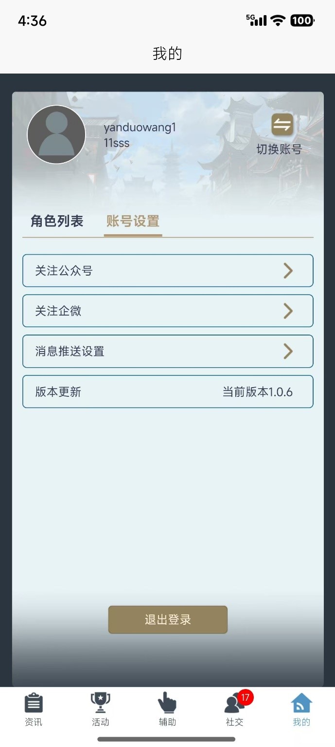 【账号设置】页内可以关注《传奇永恒》官方公众号和企业微信,设置推送消息和查看当前版本号