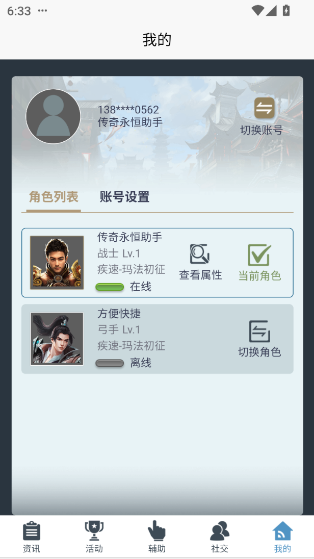 多角色绑定:支持同一账号下所有角色的绑定与自由切换,一键查看各角色区服、等级、在线状态