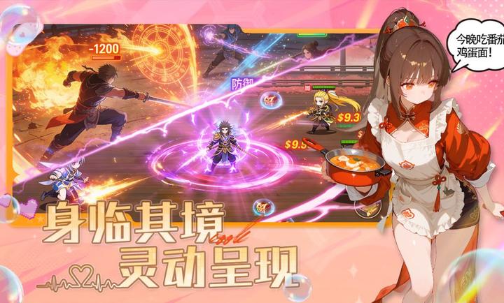 1、极致二次元美术,萌酷Q版战姬形象精致,色彩与场景完美融合,卡牌极具视觉美感。