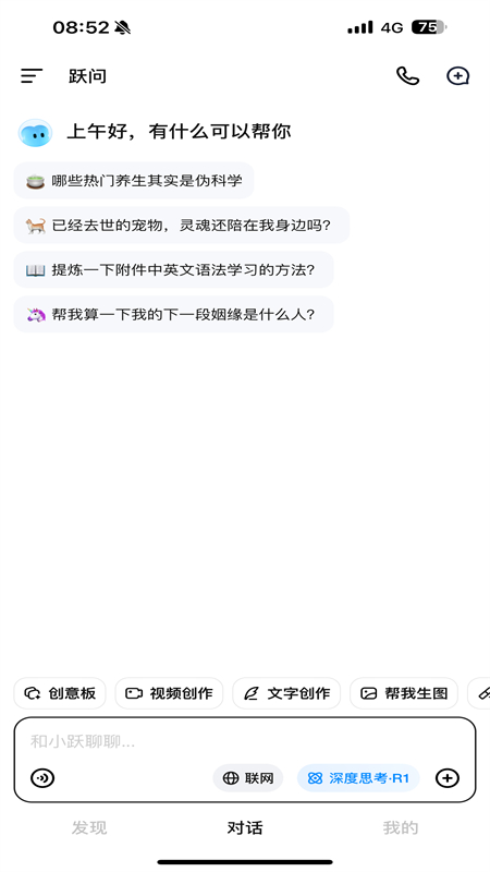 3、进入对话页面,输入你想了解的问题发送即可,AI助手可以快速为您解答