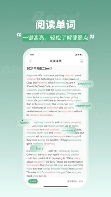 4. 精选外刊文章、英文原著、历年真题,支持导入本地电子书,即点即查生词。