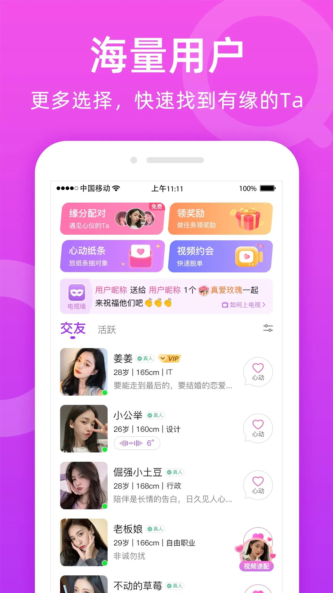 3. 互动多样:提供视频语音聊天,带来实时交友互动体验,让你能与他人随时随地畅所欲言。
