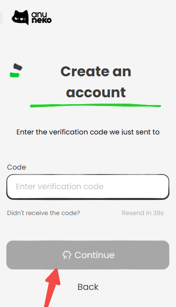 4、打开邮箱,将验证码填写到框内即可,然后点击Continue按钮。
