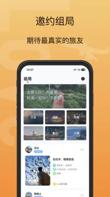 2. 这里有旅行挑战,系统匹配合拍搭子,体验充满故事。组局邀约简单,一键发布想法,轻量组局即刻出发。