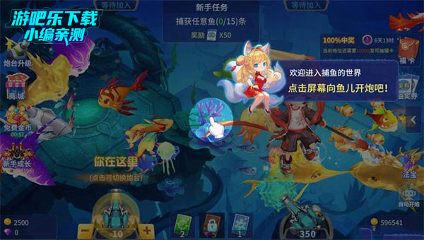 登录游戏后,就会有一个漂亮的小狐妖带您领略游戏教程,在这里小渔建议无论是捕鱼新手还是捕鱼老手都要阅读一下新手教程,因为教程不会太影响游戏进度,还能让您快速融入游戏当中。