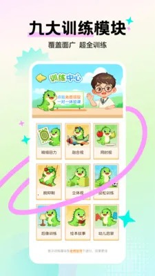 1. 它是专业视觉训练软件,基于视觉训练原理,通过趣味互动引导用户主动参与。