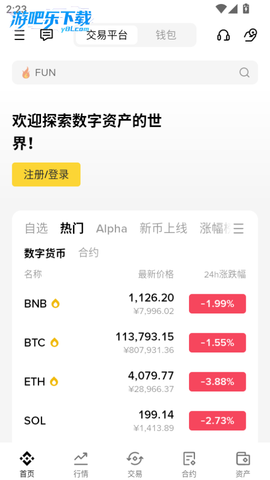 下载进入币什么安交易所软件,点击行情