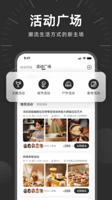 2. 丰富活动:活动板块是精彩体验的线下入口,有共创高级主题局、跨界体验局、城市逃离计划等,能带来深度分享、新奇玩法与疗愈身心之旅。