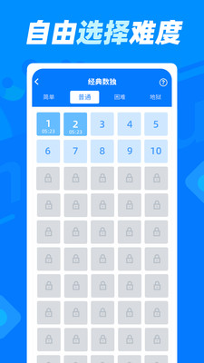 2. 经典数独超6000道题,分四个难度等级,满足不同程度用户需求。