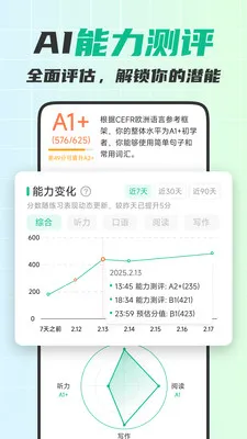 4、AI智能测评,基于CEFR标准精准定位,科学定制路径。