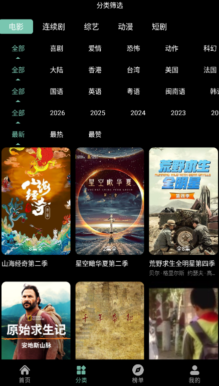 精准搜索 + 筛选:支持按类型、年份、地区、语言等多维度筛选,快速定位目标内容