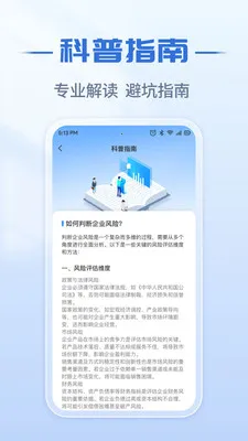4. 实用科普指南:备有实用科普指南,解析失信、税务、侵权等常见问题,普及相关知识,帮助您建立风险意识,更好地判断合作对象资质与潜在风险。