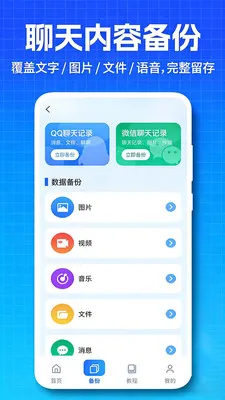 1. 多平台支持:可快速备份QQ、微信等平台的消息、图片、视频及文件至本地或云端,全面覆盖常用社交平台。