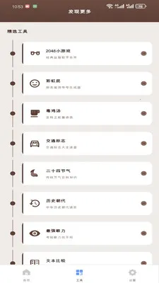 3. 丰富实用功能:工具页汇聚多种精选功能,涵盖小游戏、趣味语录、交通标志速查等,兼顾趣味与效率,满足您多样化需求。