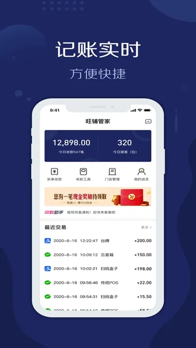 2. 融合聚合收款、经营报表、收款工具、门店管理等模块,是商户好帮手。
