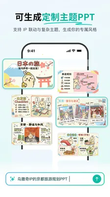 1、支持主题一键生成长文档大纲导入转PPT