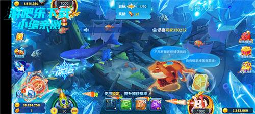 5、另外,在游戏中还会随时有超级boss出没,击杀boss后会得到boss提供的专属清场技能,大面积的捕捉鱼群,玩家们因此能够得到丰富的奖励。
