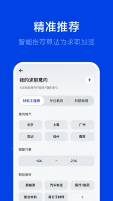 2.精准匹配超高效,基于自研推荐引擎,能精准推荐匹配职位,大幅提升求职效率,让你快速找到心仪工作。
