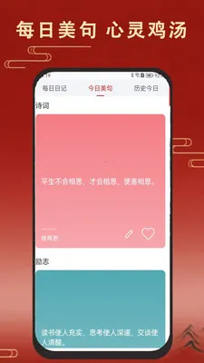 4. 今日记录功能贴心,可查看每日日记,知晓历史今日发生的事件,还能记录今日事件、查看美句,让您每天都能饱满度过。